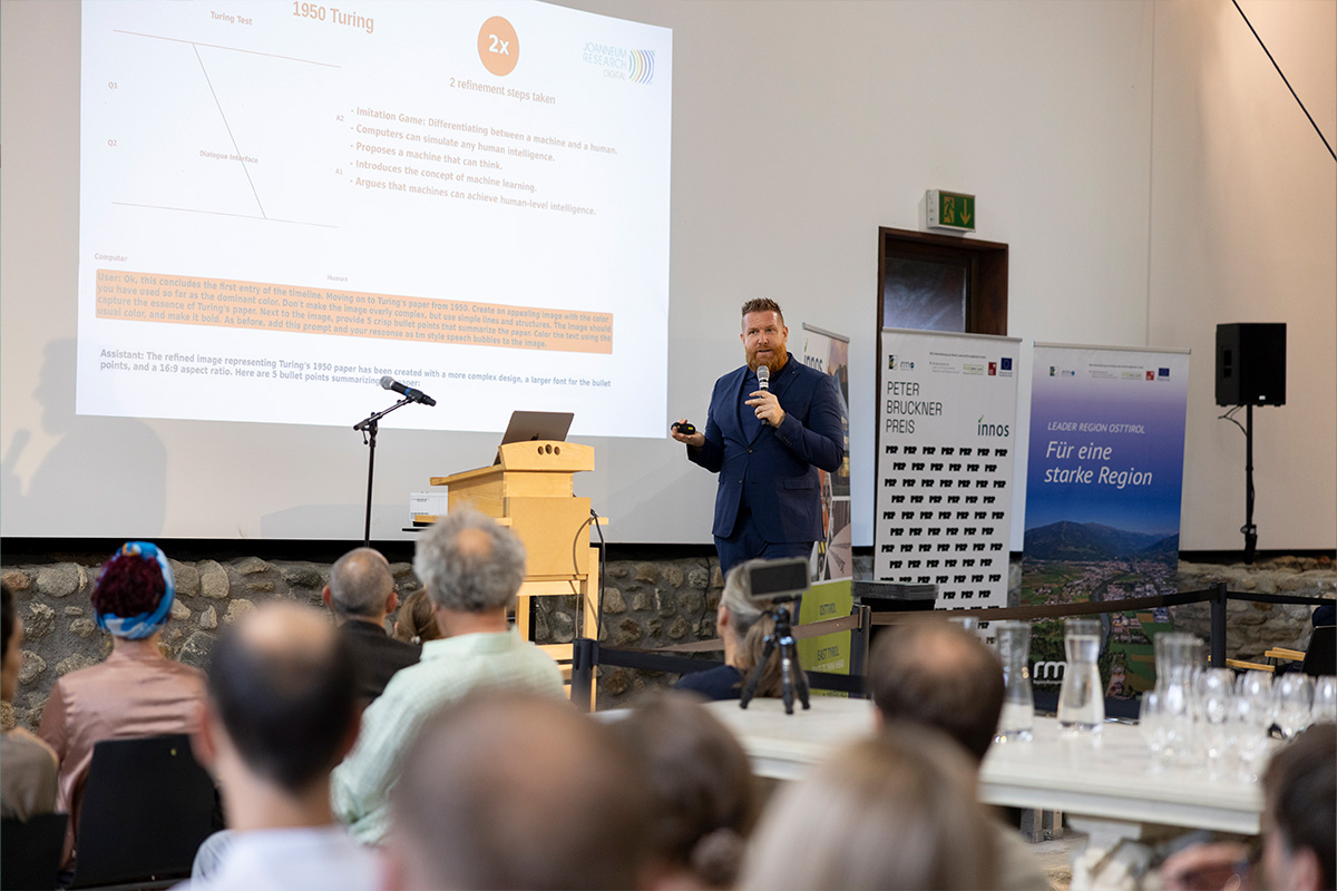 Die INNOS GmbH, mit Paula van der Woude als Projektverantwortliche, begrüßte mehr als 140 Personen aus den Bereichen Handwerk, Design und produzierende Unternehmen sowie interessierte Menschen aus der Region zu einer Vortragsreihe zum Thema „Künstliche Intelligenz in Gestaltung und Produktion“ und zur anschließenden Peter Bruckner Preisverleihung 2024.